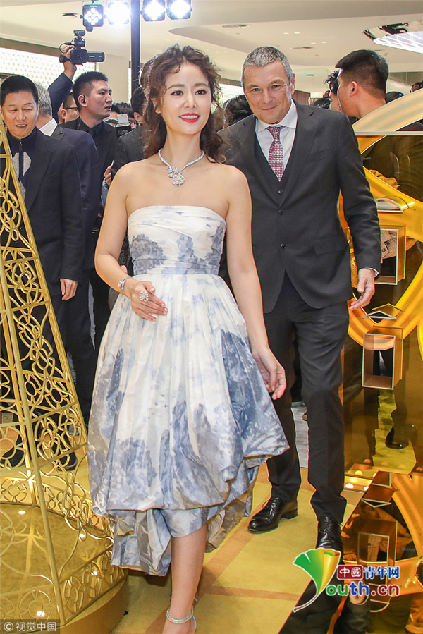 林心如穿抹胸裙秀香肩 浅笑盈盈女人味十足
