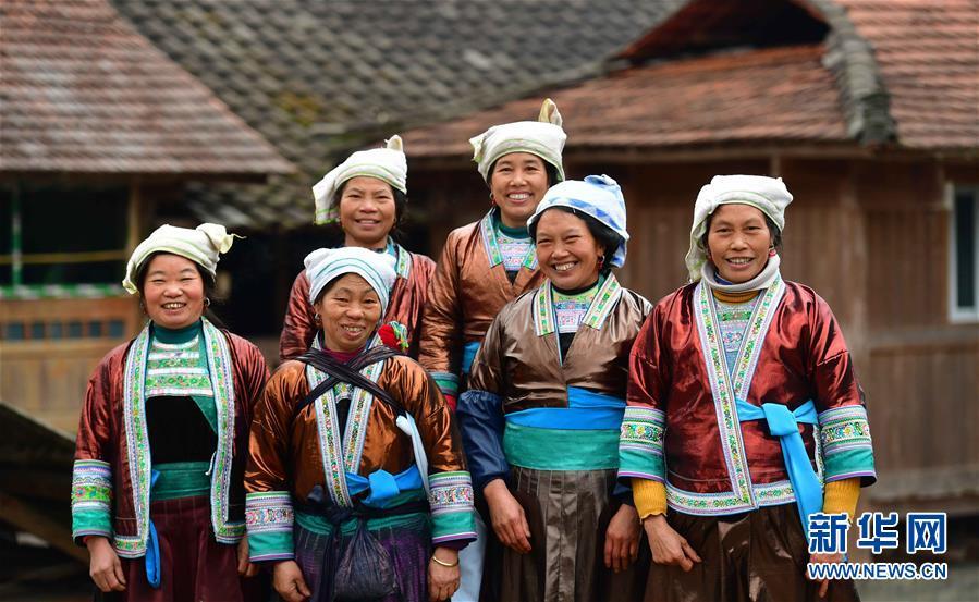 在广西融水苗族自治县杆洞乡乌英苗寨,老人们在坡会上合影(2月19日摄)。新华社记者黄孝邦摄