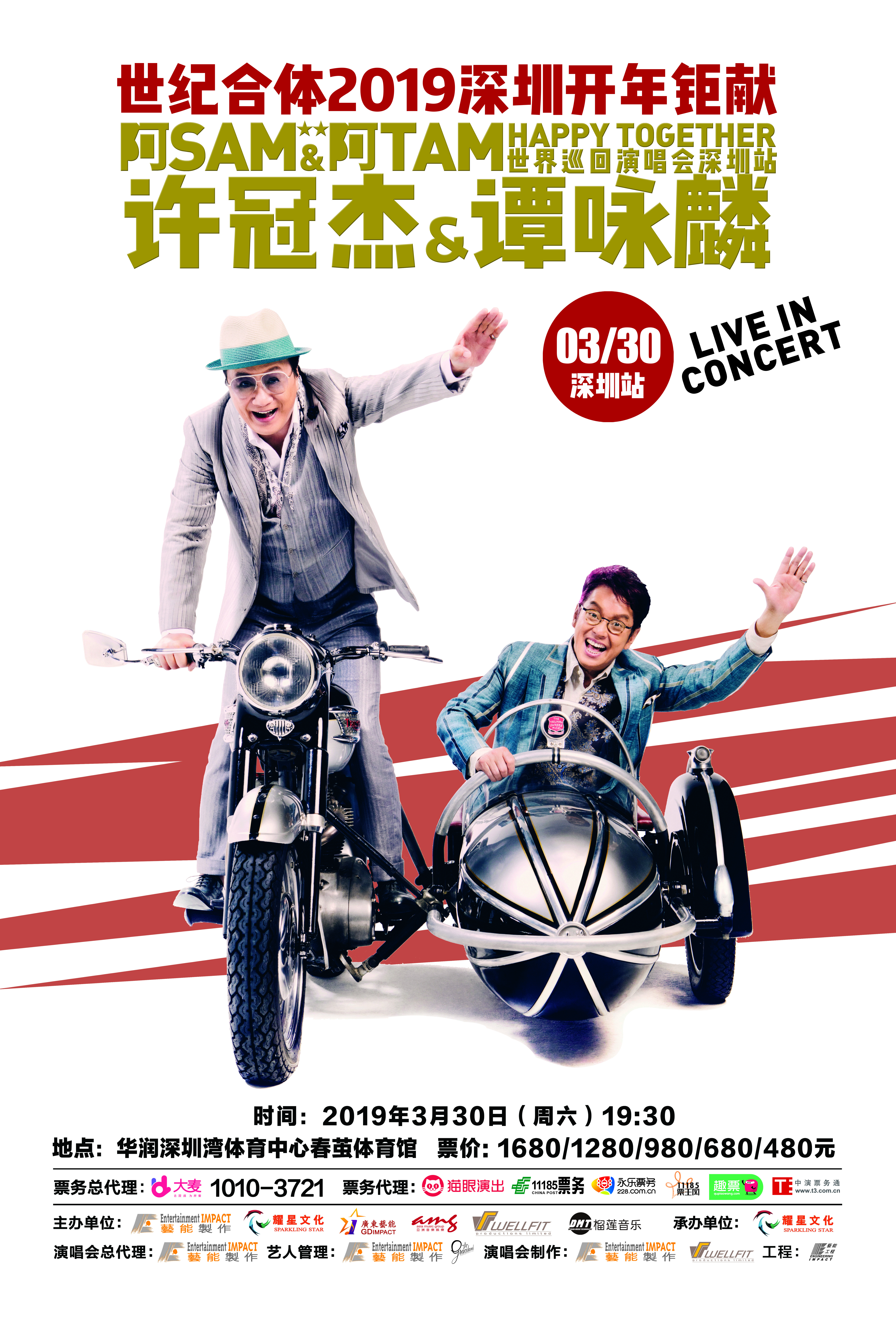“许冠杰&谭咏麟阿Sam &阿Tam Happy Together”世界巡回演唱会于2月16日在澳门开启了2019新春首唱,此后,他们将于3月23日和3月30日登陆佛山世纪莲体育中心体育场和深圳湾体育中心“春茧”体育馆。