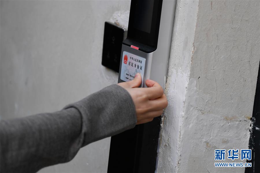 工作人员在乌镇西栅景区附近的“宾智AI客房”演示刷身份证入住客房(10月31日摄)。据了解,这里没有前台、没有接待人员,客人通过线上预订并支付房费,到店后只需要“刷身份证、刷脸”即可通过民宿门口的道闸入住。 新华社记者黄宗治摄