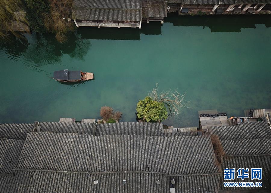 2月25日,乌镇景区内春意萌动(无人机拍摄)。 随着气温升高,浙江省桐乡市乌镇景区春意萌动。 新华社记者翁忻旸摄