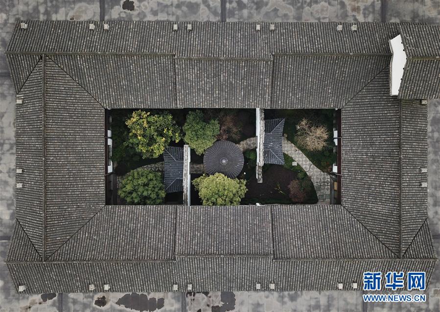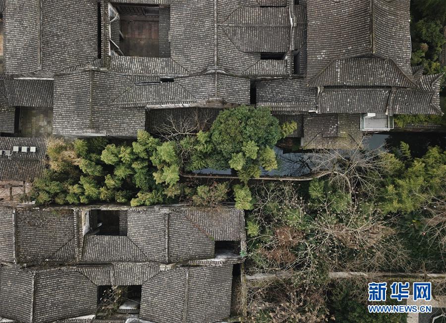 2月25日,乌镇景区一处庭院内春意萌动(无人机拍摄)。 随着气温升高,浙江省桐乡市乌镇景区春意萌动。 新华社记者翁忻旸摄