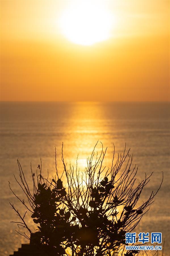 这是2月25日拍摄的印度尼西亚巴厘岛情人崖日落景色。 情人崖雄奇险峻的风景吸引着许多游客前来参观游览。 新华社记者 杜宇 摄