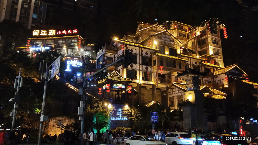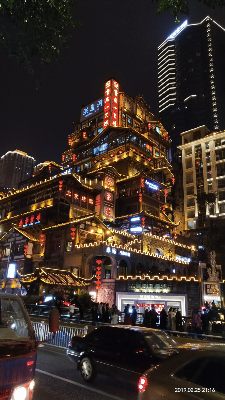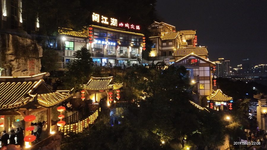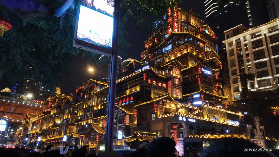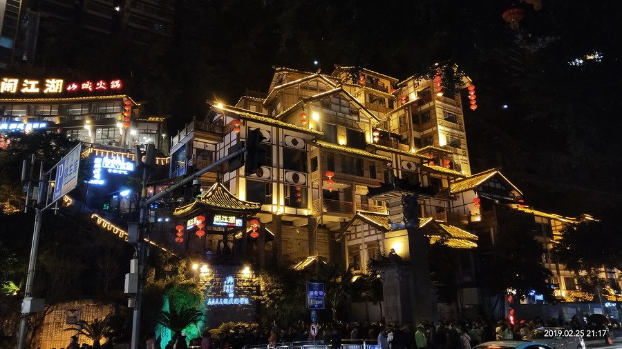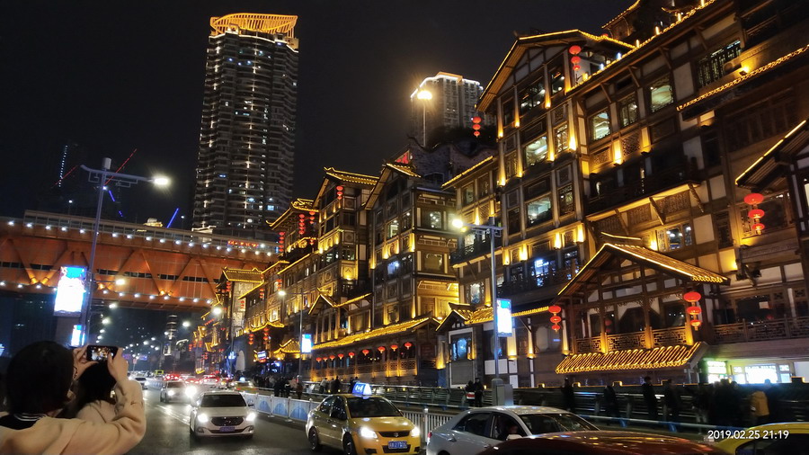 2019年2月25日,重庆,春节过后,山城网红景点洪崖洞依然处于暴挤状态,在抖音等短视频平台走红以后,绚烂辉煌的洪崖洞夜景成为赴渝旅行第一打卡景点。