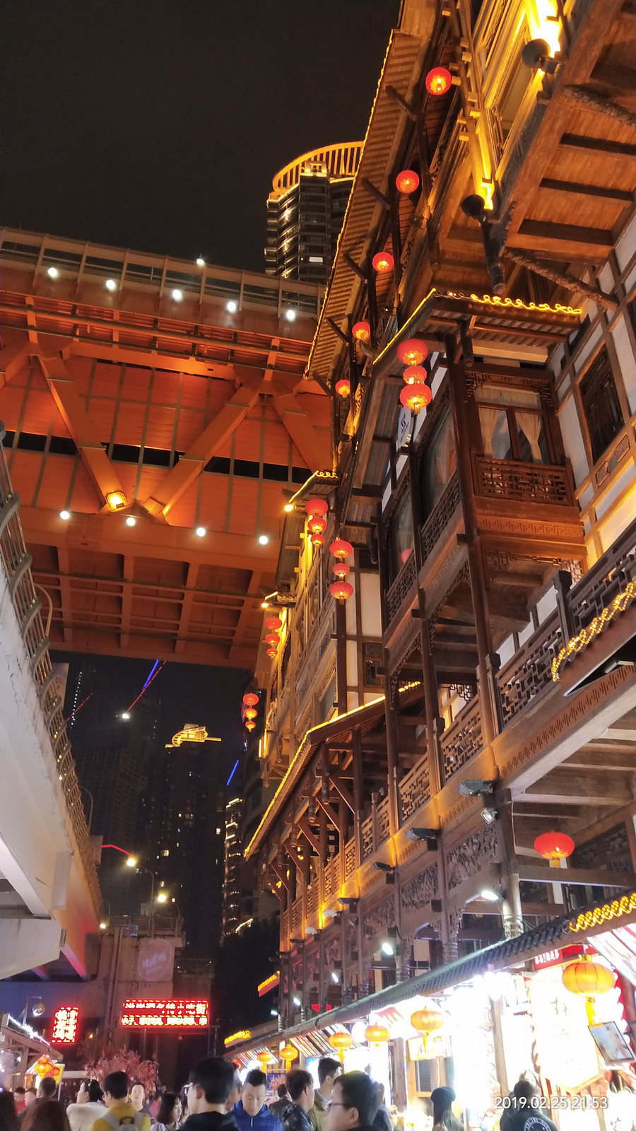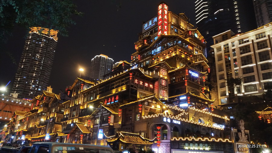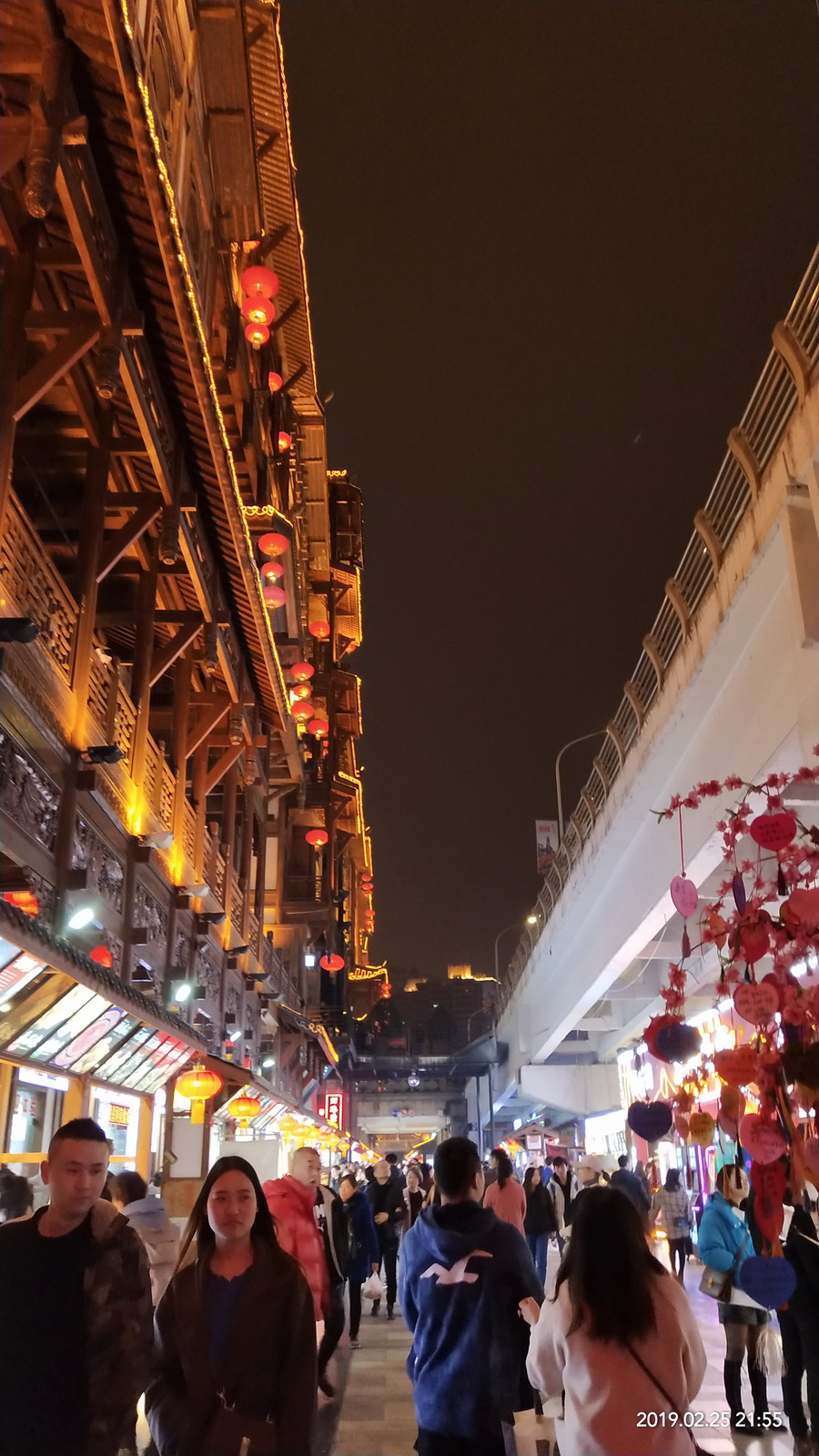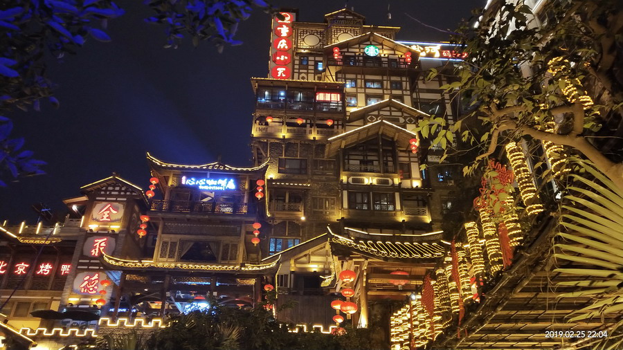 2019年2月25日,重庆,春节过后,山城网红景点洪崖洞依然处于暴挤状态,在抖音等短视频平台走红以后,绚烂辉煌的洪崖洞夜景成为赴渝旅行第一打卡景点。