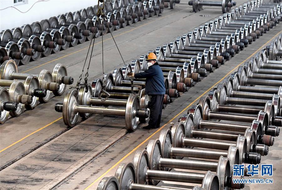 2月26日,中国铁路郑州局集团有限公司郑州北车辆段修配车间职工对检修完毕的轮对进行选配调运。新华社记者 李安 摄