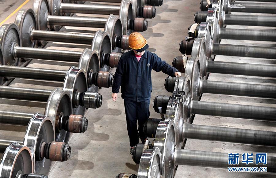 2月26日,中国铁路郑州局集团有限公司郑州北车辆段修配车间职工对检修完毕的轮对直径进行二次测量。新华社记者 李安 摄