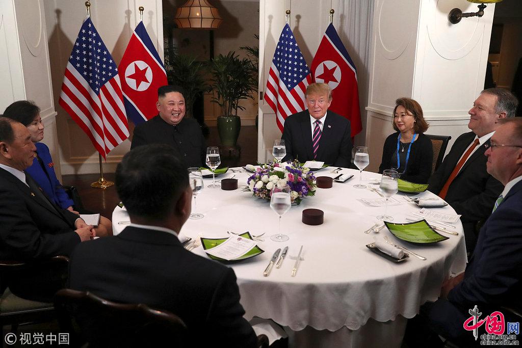 当地时间2月27日,第二次朝美首脑会晤在越南河内索菲特传奇大都会酒店举行。图为会晤后,两人共进晚餐。图片作者:LEAH MILLIS/视觉中国