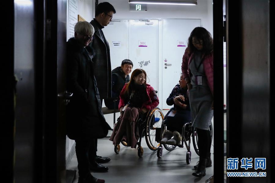 2月27日,罕见病病友在北京天桥艺术中心小剧场舞台候场时交流。新华社记者 张玉薇 摄