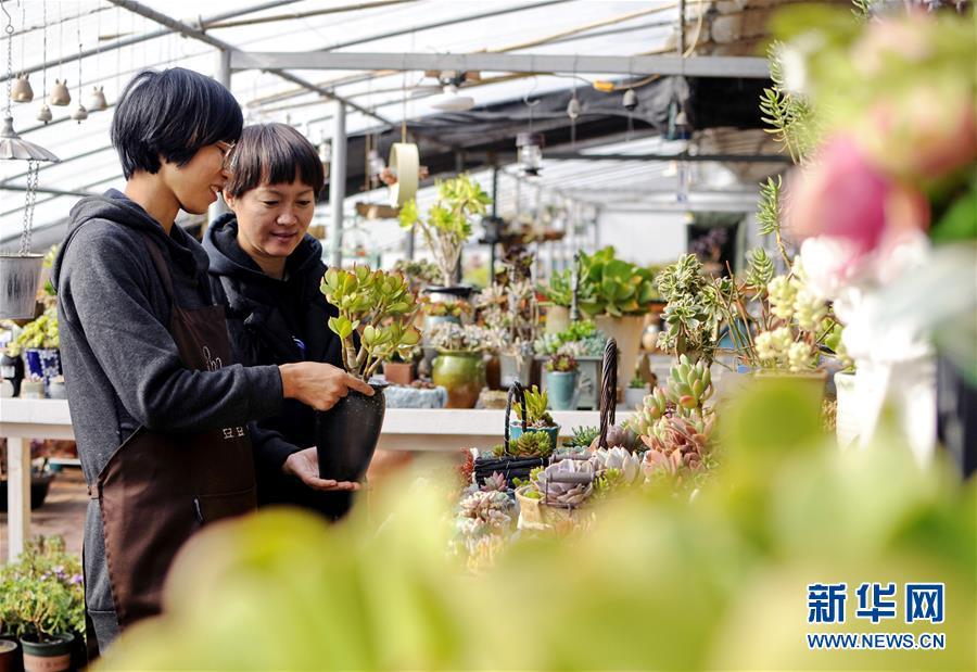 2月28日,顾客在河北省巨鹿县南街村选购多肉植物。近年来,河北省巨鹿县大力发展特色种植业,依托当地花卉苗木产业资源优势,鼓励农民打造多肉植物生产研发基地和休闲旅游基地,并结合市场需求推行“线上”和“线下”相结合的销售模式,为农民拓宽了增收渠道。新华社记者牟宇摄