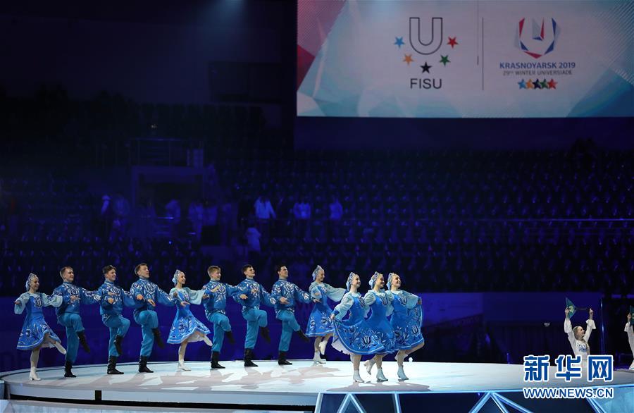 3月2日,演员在开幕式现场表演。 当日,第29届世界大学生冬季运动会在俄罗斯克拉斯诺亚尔斯克市开幕。 新华社记者王东震摄