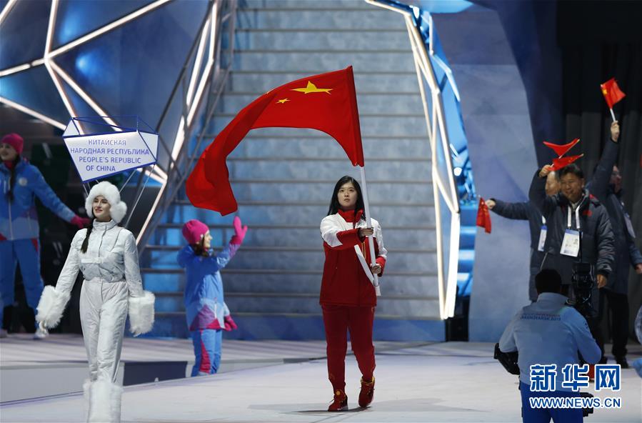 3月2日,中国代表团在开幕式上入场。 当日,第29届世界大学生冬季运动会在俄罗斯克拉斯诺亚尔斯克市开幕。 新华社记者贺长山摄