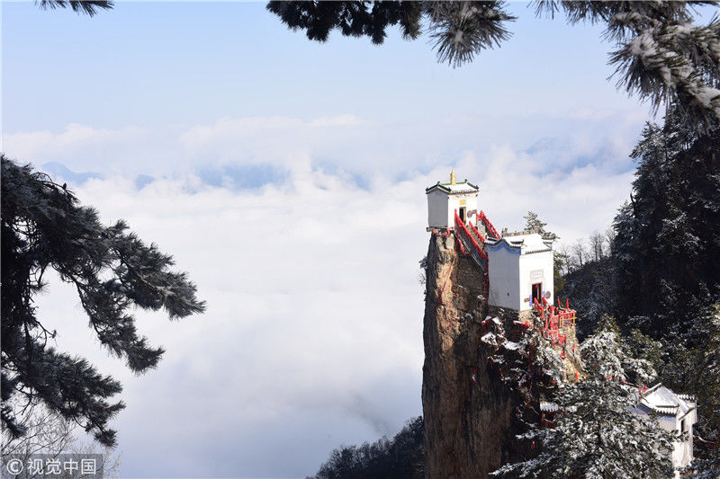 2019年3月3日,陕西商洛,位于镇安县的塔云山景区云海翻腾,宛如仙境。