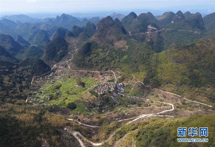广西融安县东起乡崖脚村铜板屯景色(3月3日无人机拍摄)。
