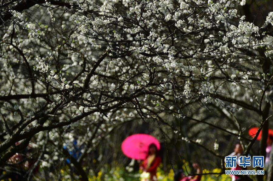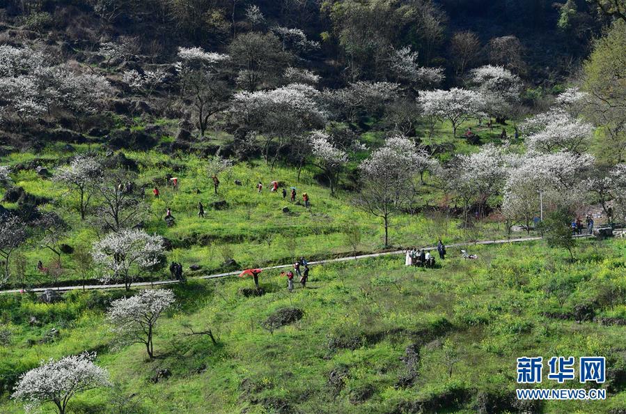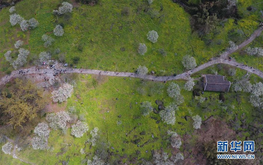游客在铜板屯踏青赏花(3月3日无人机拍摄)。