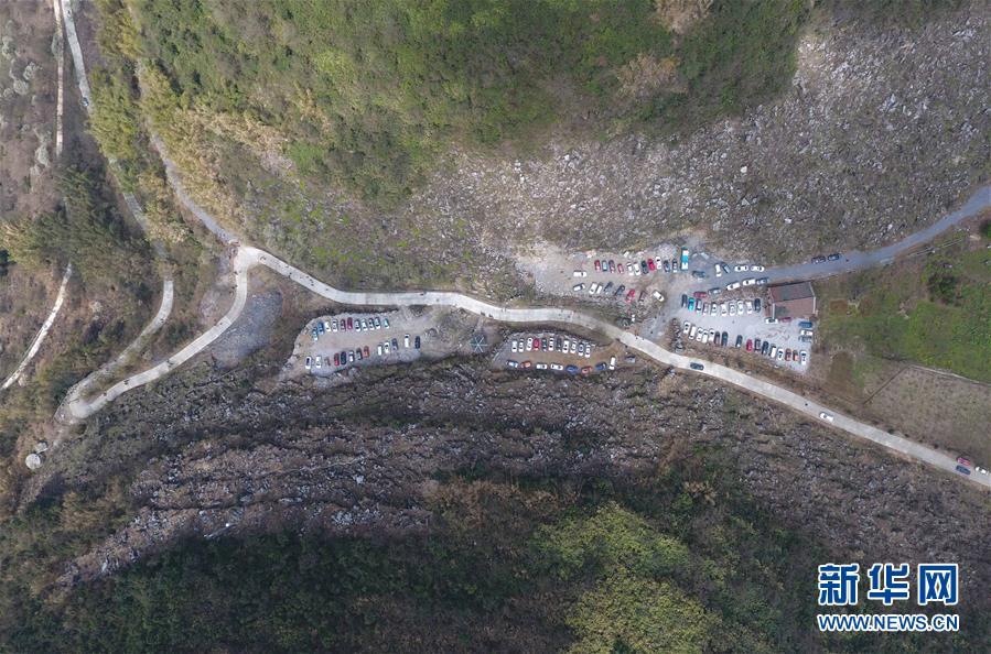 铜板屯的停车场停满游客的车辆(3月3日无人机拍摄)。