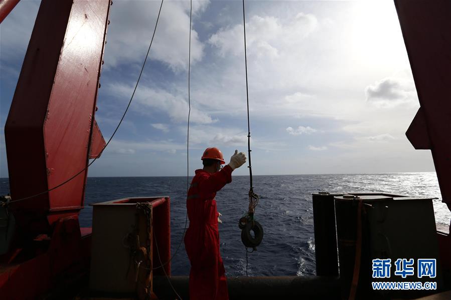 “雪龙”号船员在进行地质绞车钢缆保养(2月28日摄)。 北京时间3月4日凌晨3时28分,“雪龙”号极地考察船载着中国第35次南极科考队队员,由东经107度01分穿越赤道,返回北半球。 新华社记者 刘诗平摄