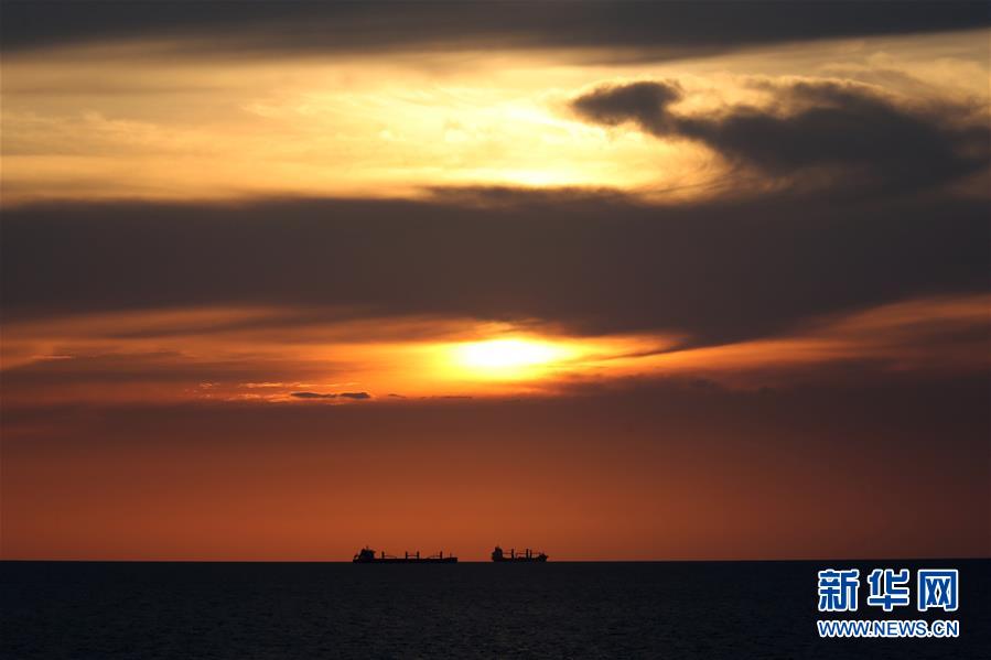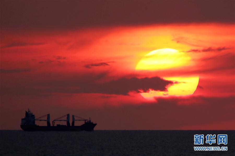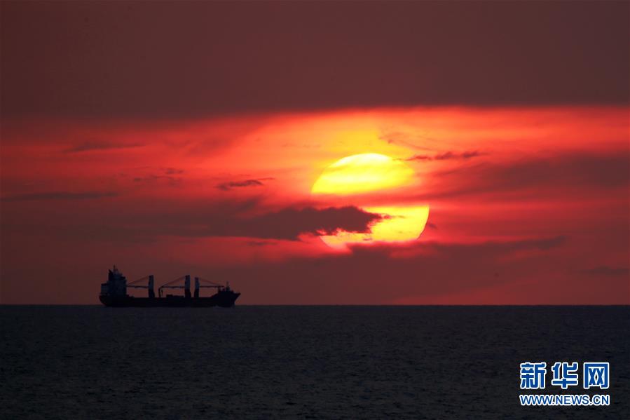过赤道前印度洋上的晚霞(3月3日摄)。 北京时间3月4日凌晨3时28分,“雪龙”号极地考察船载着中国第35次南极科考队队员,由东经107度01分穿越赤道,返回北半球。 新华社记者 刘诗平摄