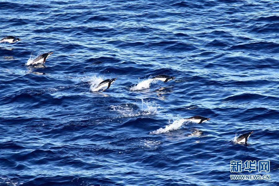 这是海面上的企鹅群(2月15日摄)。新华社记者 刘诗平摄