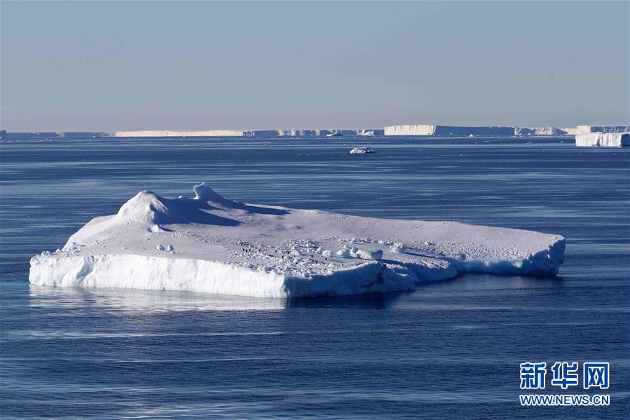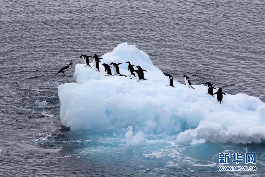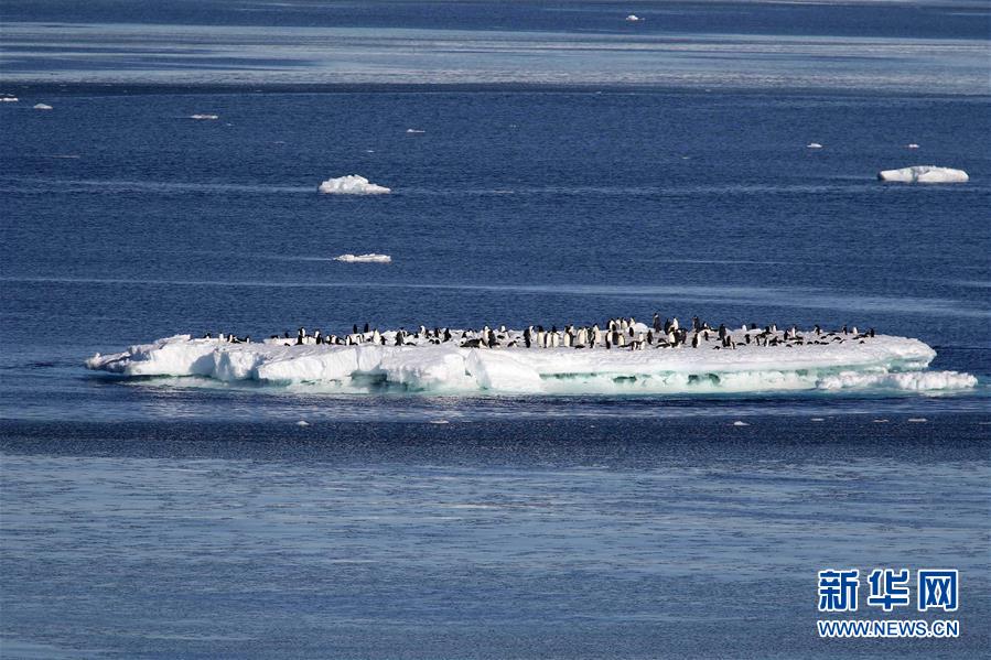 这是2月15日拍摄的南极小冰山上的企鹅群。新华社记者 刘诗平摄