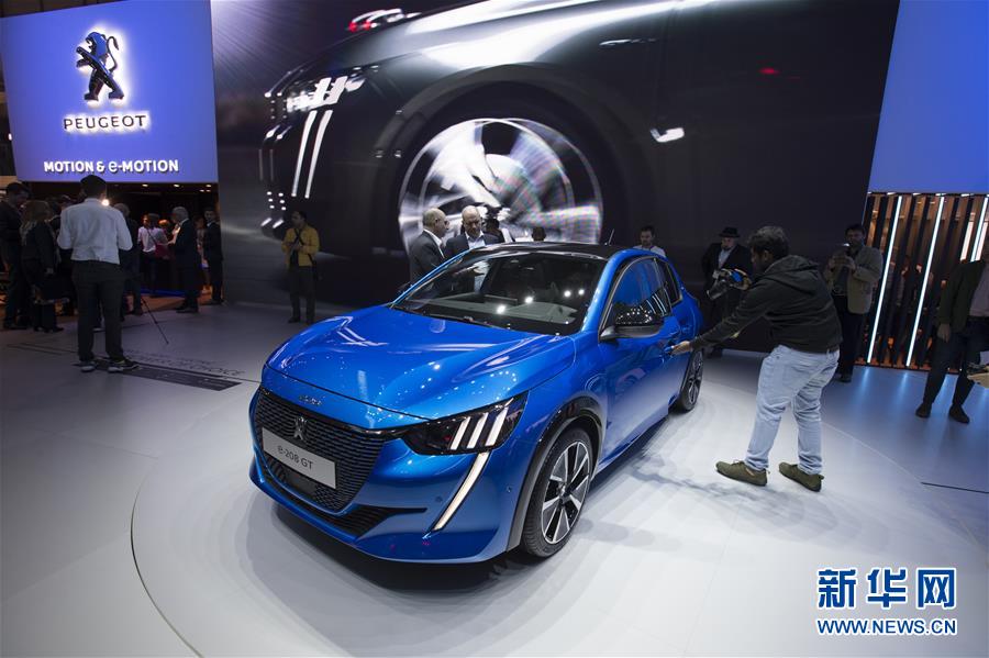 这是3月5日在瑞士日内瓦国际车展上拍摄的最新发布的标致e-208 GT电动车。新华社记者徐金泉摄