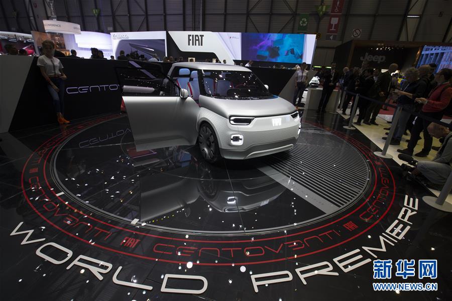 这是3月5日在瑞士日内瓦国际车展上拍摄的最新发布的菲亚特小型概念车Centoventi。新华社记者徐金泉摄