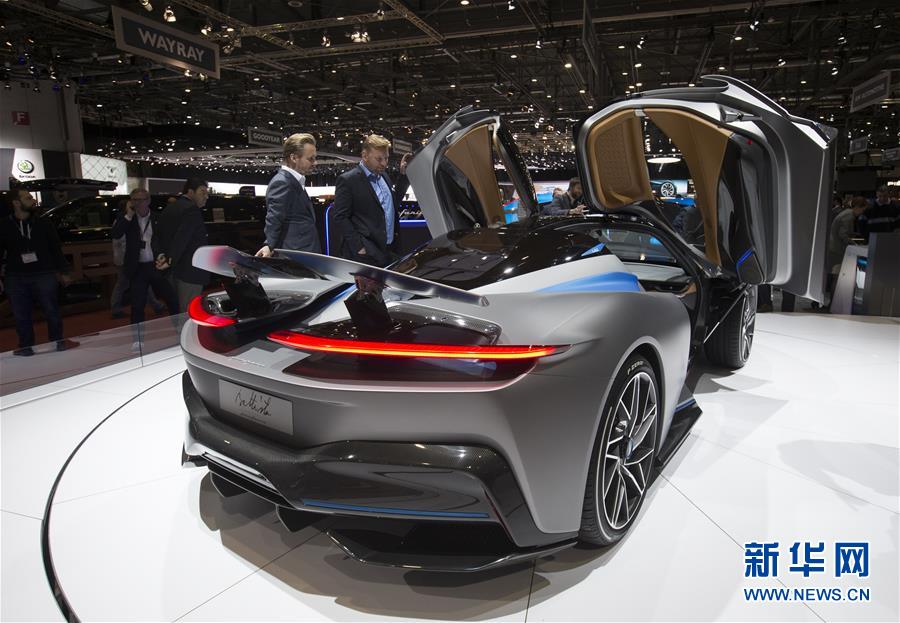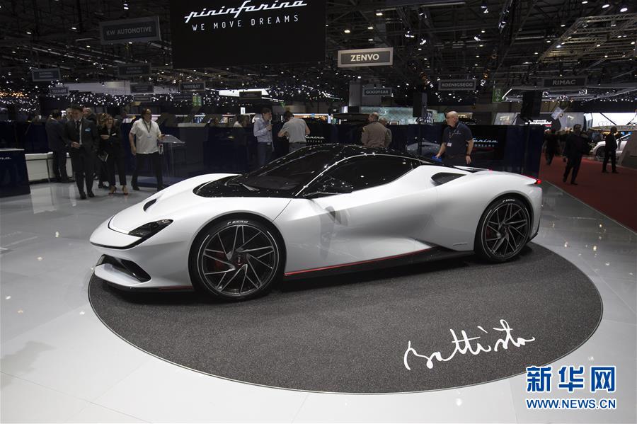 这是3月5日在瑞士日内瓦国际车展上拍摄的最新发布的宾尼法利纳Battista电动跑车。新华社记者徐金泉摄