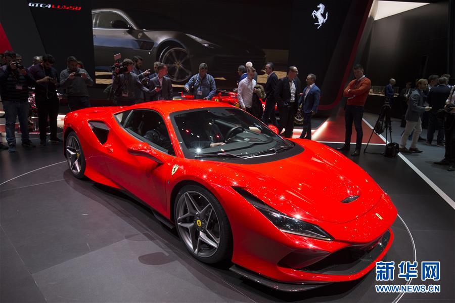 3月5日,在瑞士日内瓦国际车展媒体日预展上,人们观看法拉利新款跑车。 第89届日内瓦国际车展当天举行媒体日预展。车展将于3月7日正式拉开帷幕,全球约220家汽车及零配件厂商参展。 新华社记者 徐金泉 摄
