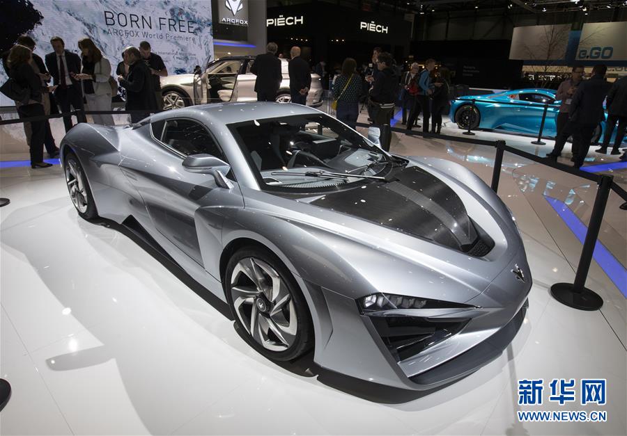 这是3月5日在瑞士日内瓦国际车展上拍摄的最新发布的北汽新能源ARCFOX。