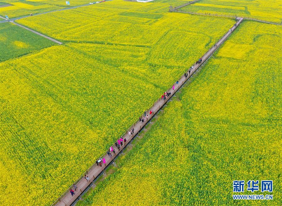 这是无人机航拍的广汉市油菜花田(3月6日摄)。 新华社记者刘坤摄