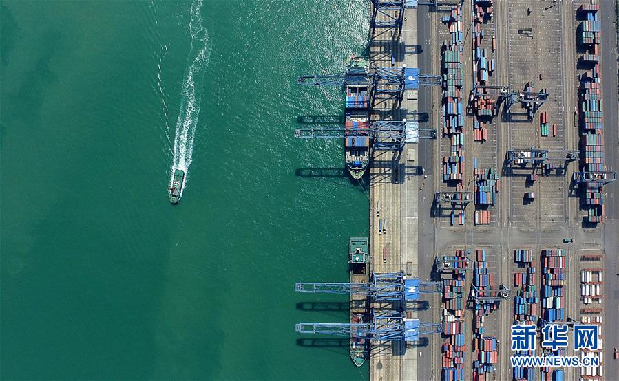 货轮停靠在天津港北疆港区(2017年4月21日无人机拍摄)。新华社记者 岳月伟 摄