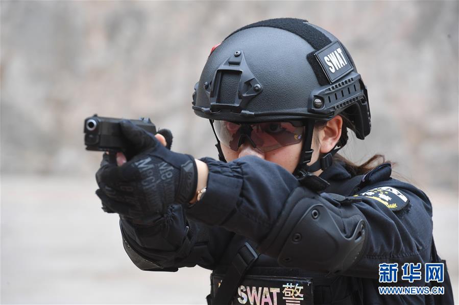 福建省漳州市公安局巡特警支队三大队女特警高明珠在靶场进行射击训练(2月19日摄)。 新华社记者 姜克红 摄