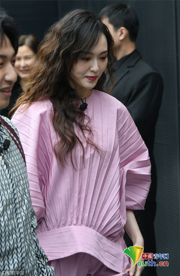 唐嫣隔玻璃比心与粉丝互动 路人视角也美到窒息