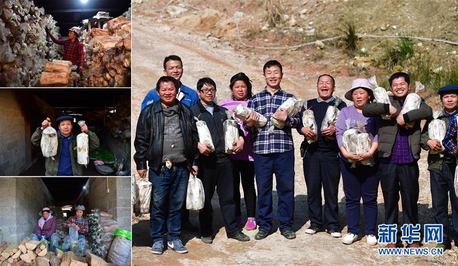 拼版照片:右图为在广西融水苗族自治县杆洞乡尧告村,苗坪岭药材种植专业合作社的社员们在一起(3月11日摄);左上中下图为社员们在搬运、包装灵芝棒(3月11日摄)。据介绍,150户贫困户加入了苗坪岭药材种植专业合作社。 广西融水苗族自治县是国家扶贫工作重点县,全县“九山半水半分田”,交通不便,生存环境较为恶劣,脱贫攻坚任务艰巨,目前还有4万多贫困人口。 面对经济发展落后、贫困面广且程度深的现状,当地积极探索推行党建新模式,组建屯级党支部委员会、公共事务理事会、公共事务监事会、纠纷调解委员会、产业发展协会等,以充分发挥基层党组织的战斗堡垒作用。 在大苗山脱贫攻坚第一线的各个苗寨里,大批扶贫干部、驻村第一书记,和村干部、党员、致富带头人、贫困群众一道,组成一支支脱贫攻坚队伍,团结一心,共同奋斗,加快实现脱贫致富。新华社记者 黄孝邦 摄