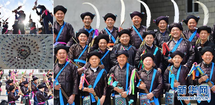 拼版照片:右图为在广西融水苗族自治县杆洞乡尧告村,扶贫工作队员李义成(后排左一)和拉鼓节传承人队伍在一起(3月12日摄);左上中下图为尧告村拉鼓节芦笙队在演奏(2月7日摄)。尧告拉鼓节是广西境内苗族祭祖祈福传统文化活动的“活化石”。2018年,经驻村扶贫工作队挖掘整理并组织申报,尧告拉鼓节被列入自治区级非物质文化遗产保护名录。 广西融水苗族自治县是国家扶贫工作重点县,全县“九山半水半分田”,交通不便,生存环境较为恶劣,脱贫攻坚任务艰巨,目前还有4万多贫困人口。 面对经济发展落后、贫困面广且程度深的现状,当地积极探索推行党建新模式,组建屯级党支部委员会、公共事务理事会、公共事务监事会、纠纷调解委员会、产业发展协会等,以充分发挥基层党组织的战斗堡垒作用。 在大苗山脱贫攻坚第一线的各个苗寨里,大批扶贫干部、驻村第一书记,和村干部、党员、致富带头人、贫困群众一道,组成一支支脱贫攻坚队伍,团结一心,共同奋斗,加快实现脱贫致富。 新华社记者 黄孝邦 摄