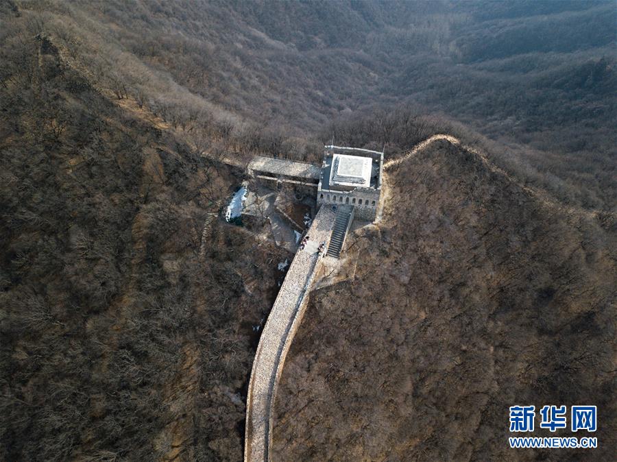 这是3月18日无人机拍摄的九眼楼长城。 九眼楼长城位于北京市延庆区四海镇,该楼是明代长城中建筑规模和形制最大的一座敌楼,因楼体为青砖砌筑,每边并排九个箭窗,故称“九眼楼”。 新华社记者 鞠焕宗 摄