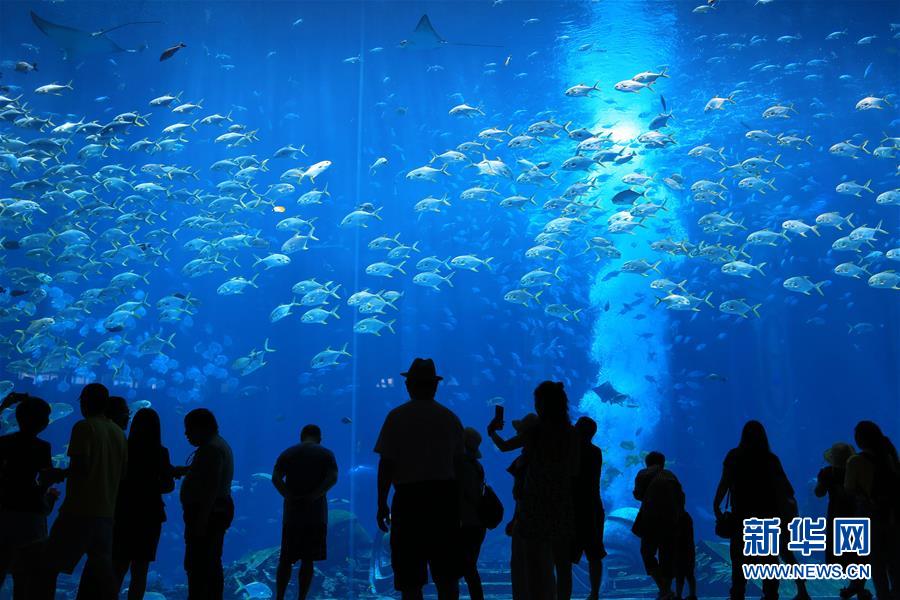 3月17日,在海南省三亚市海棠湾亚特兰蒂斯酒店,游客在酒店内的水族馆参观。 近年来,海南省深入推进旅游供给侧结构性改革,充分发挥当地生态环境优势,推进全域旅游升级发展。据介绍,2018年,海南接待国内外游客7627.39万人次,实现旅游总收入950.16亿元。 新华社记者 隋先凯 摄