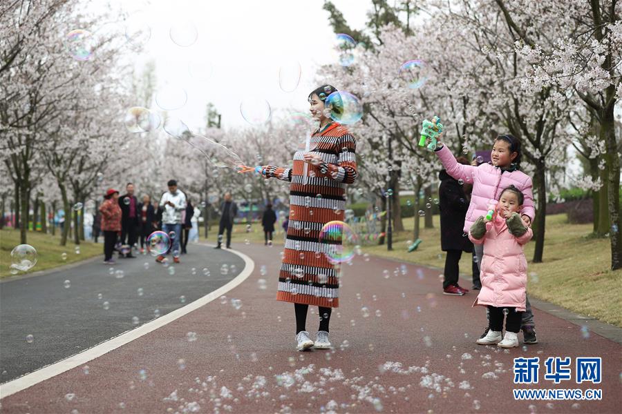 3月18日,小朋友在眉山樱花博览园里嬉戏。当日,第三届眉山樱花节在位于四川省眉山市的眉山樱花博览园开幕,多个品种的樱花次第盛开,吸引了众多市民和游客前来观赏。近年来,当地政府以举办眉山樱花节等一系列绿色生态旅游节会为突破,持续推动绿色发展,眉山生态旅游已受到省内外游客的广泛青睐。 新华社记者江宏景摄