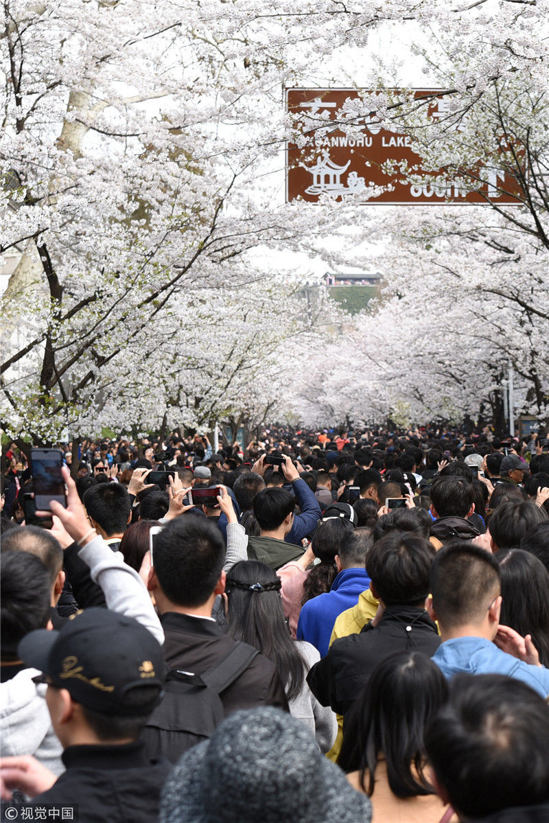 樱花盛开时 赏樱大军挤爆南京鸡鸣寺