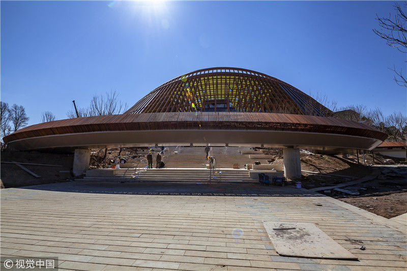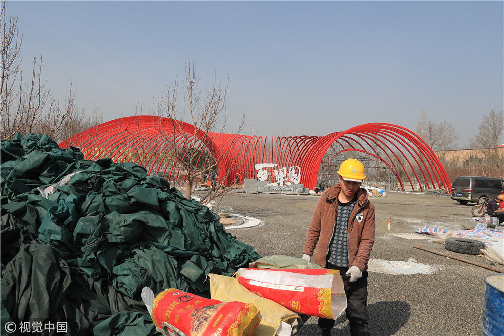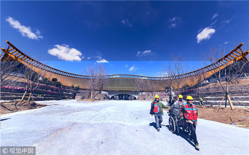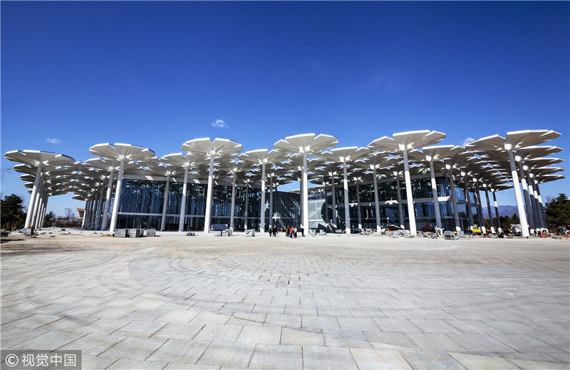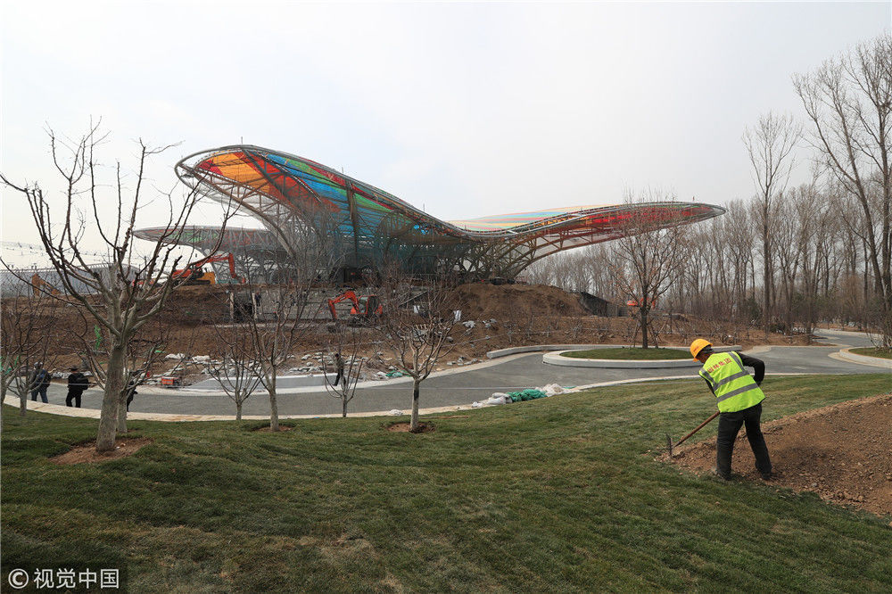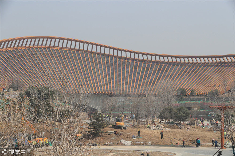 2019年3月19日,北京,世园会场馆建设现场。2019年中国北京世界园艺博览会各项筹备工作进展顺利,预计全部展园建设工作将于3月底完成。牛云岗/千龙图像/视觉中国