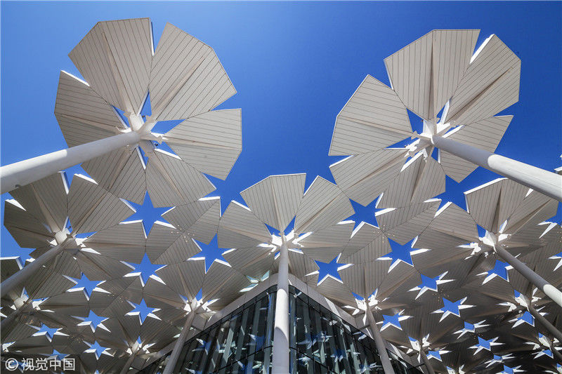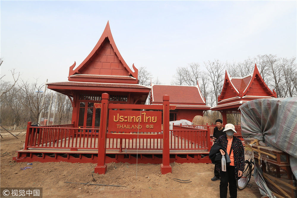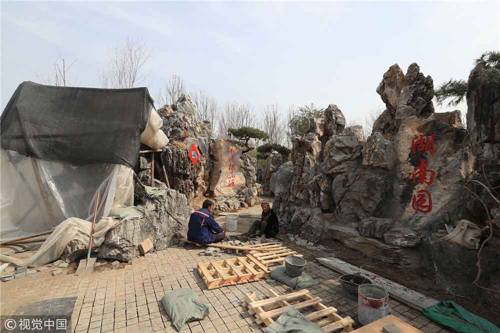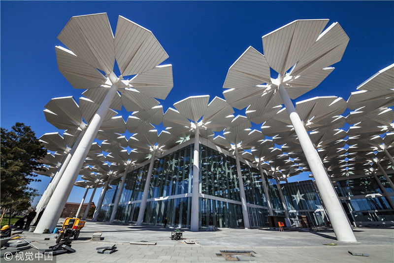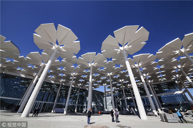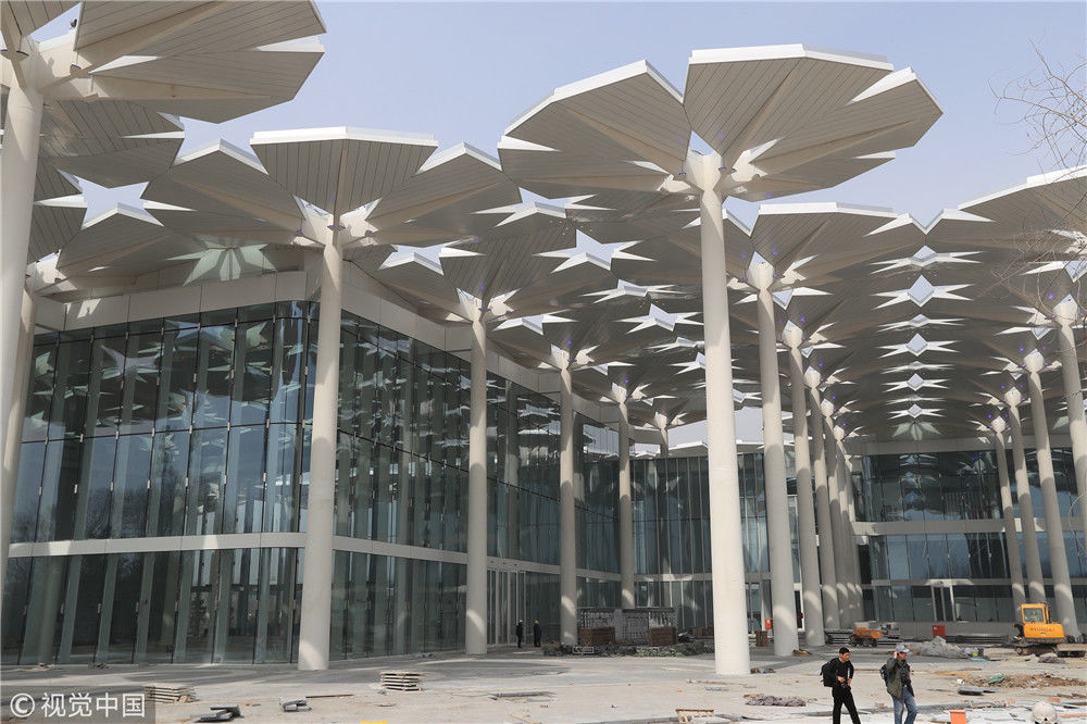2019年3月19日,北京,世园会场馆建设现场。2019年中国北京世界园艺博览会各项筹备工作进展顺利,预计全部展园建设工作将于3月底完成。牛云岗/千龙图像/视觉中国