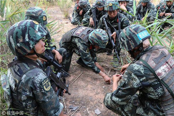2019年3月25日。云南西双版纳,捕歼战斗演练中,各组分工,展开行动。