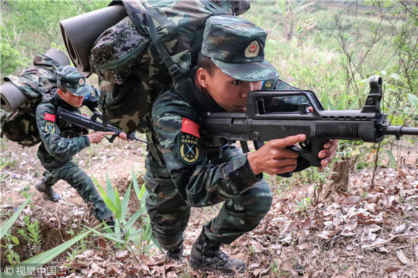 2019年3月24日,云南西双版纳,特战队员进行10公里奔袭训练。
