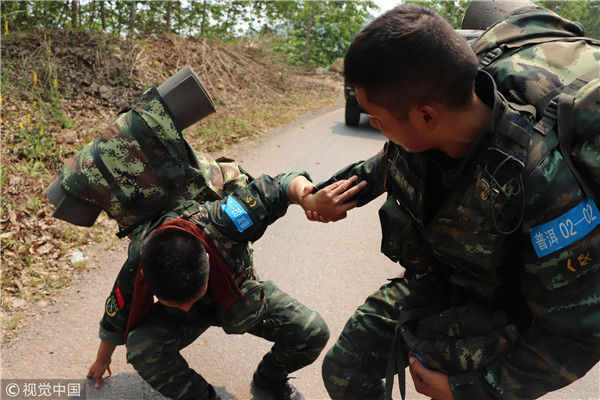 2019年3月24日,云南西双版纳,特战队员开展极限体能训练。