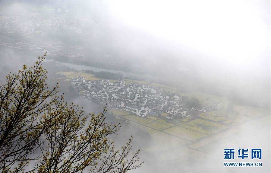 这是3月27日拍摄的安徽省黄山市齐云山风景区。 当日,安徽省黄山市齐云山风景区云雾缭绕,风景秀美。 新华社记者 刘军喜 摄