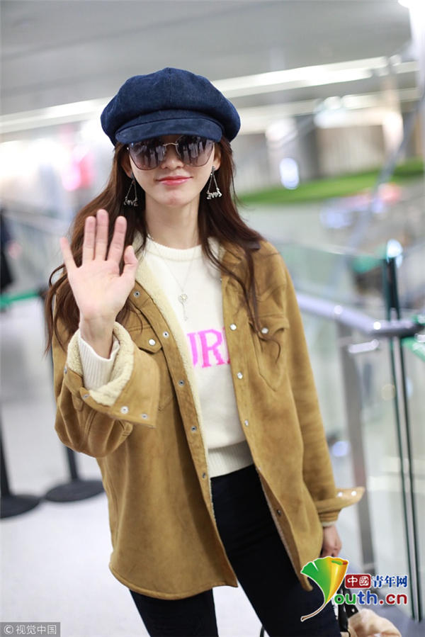 林志玲毛衣配破洞仔裤秀美腿 对镜甜笑温柔挥手