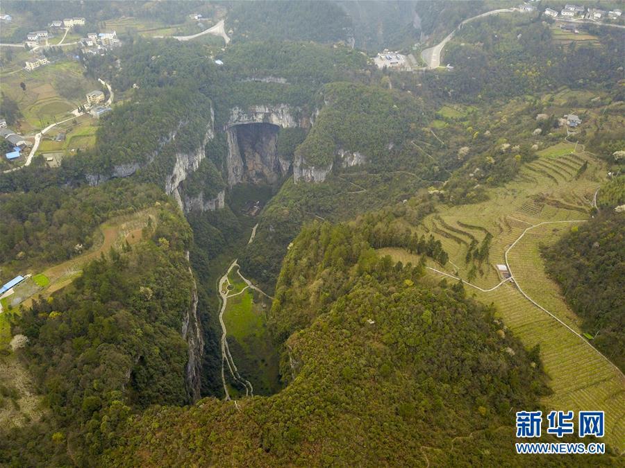 这是3月27日拍摄的天生三桥景区(无人机拍摄)。 随着天气转暖,重庆武隆天生三桥景区风景如画,气势磅礴的天生石桥和绿意盎然的山林相映成趣,吸引众多游客前来踏春赏景。 新华社记者刘潺摄