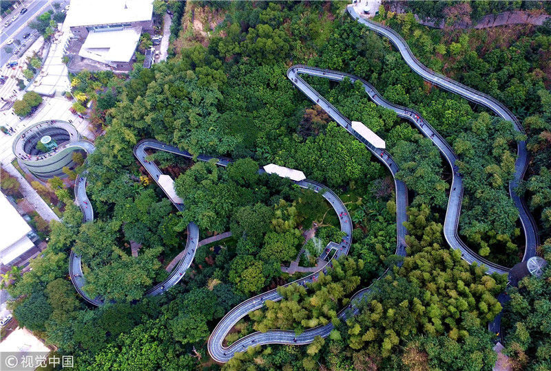 2019年3月19日,在福州城区,有一条依山而建的步栈道,被市民称为最美“福道”,让市民一出家门就能登山锻炼。“福道”依山而建,蜿蜒前行,穿行在山林中。全线规划总长约19公里,横贯象山、后县山、梅峰山、金牛山等山体,连接福州五大公园,是福州市首条城市山水生态休闲健身走廊。在“树冠”上行走,在森林中穿梭,这是“福道”带给许多人的别样体验。(资料图片)王东明(福建分社)/中新社/视觉中国 编辑/陈进