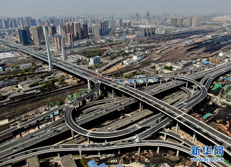 这是3月31日无人机拍摄的郑州市农业路大桥互通立交。