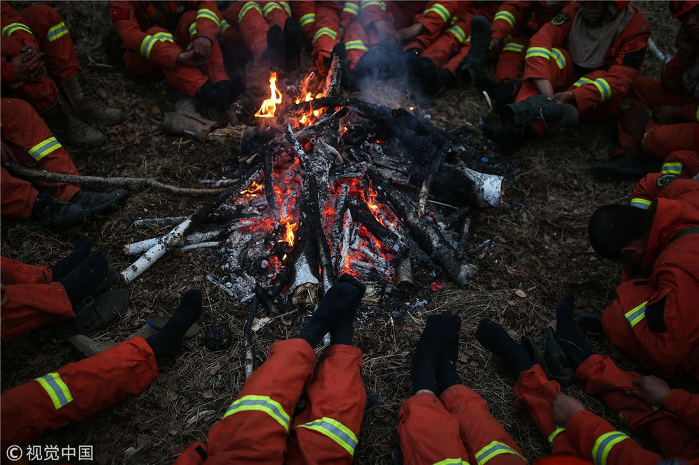 2014年2月16日,四川凉山,杨小辉和战友扑灭火后的真实写照。
